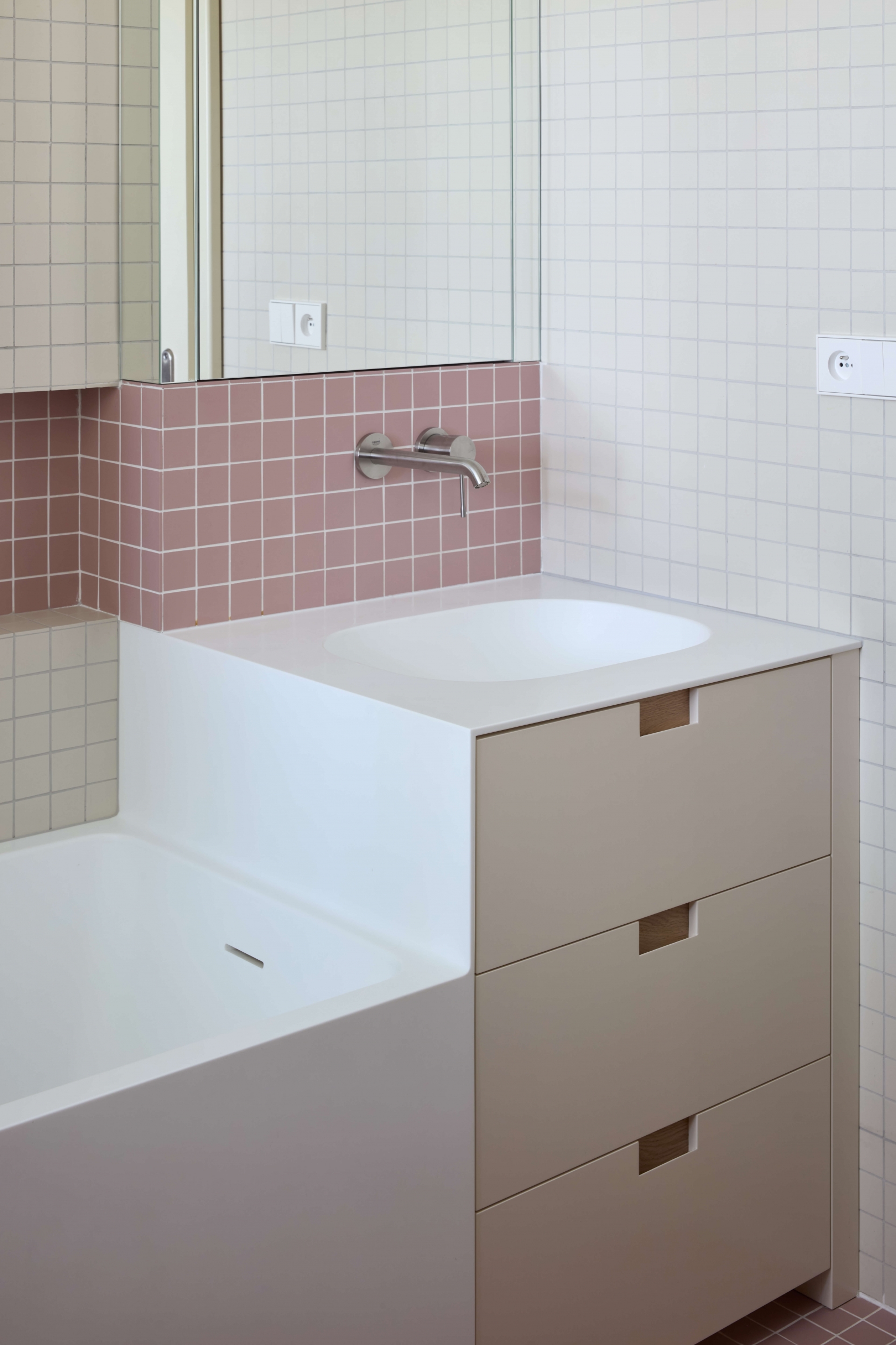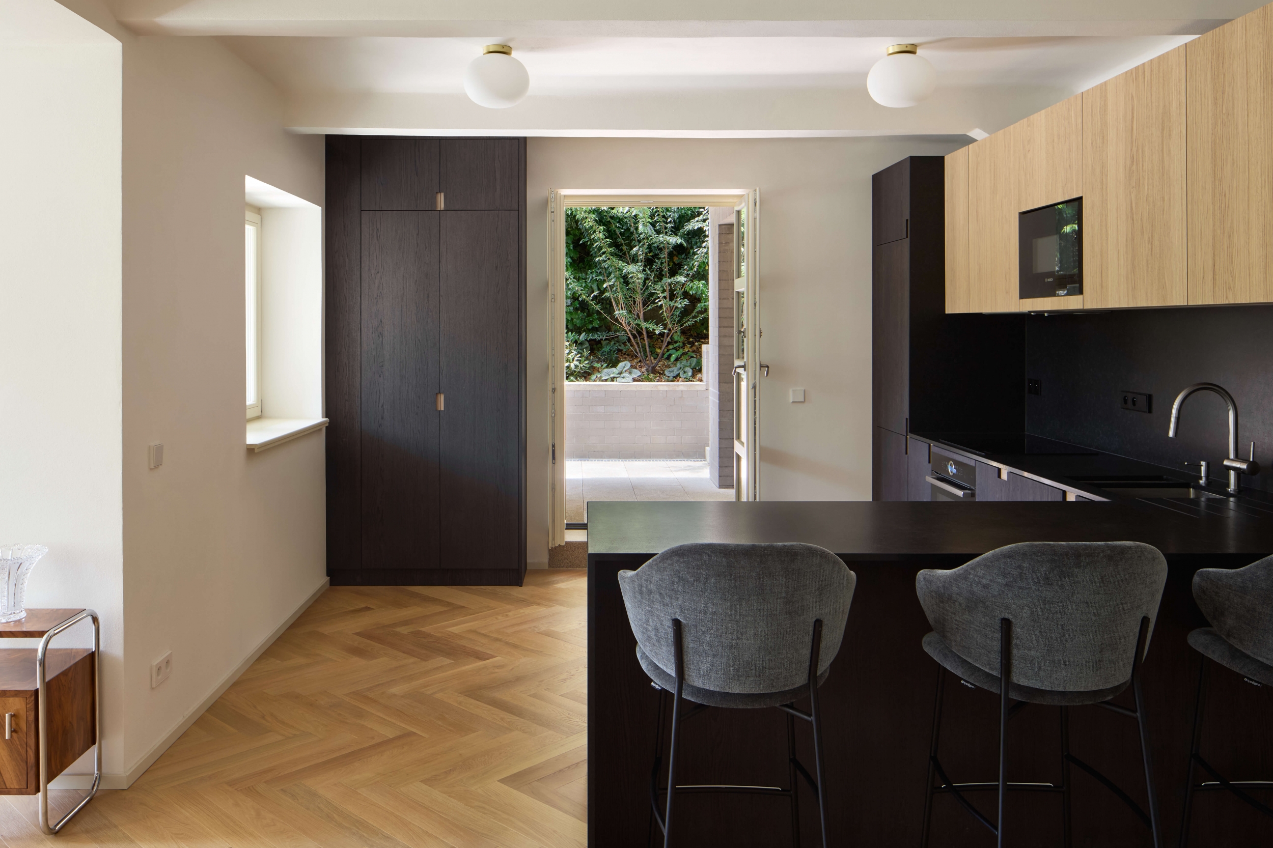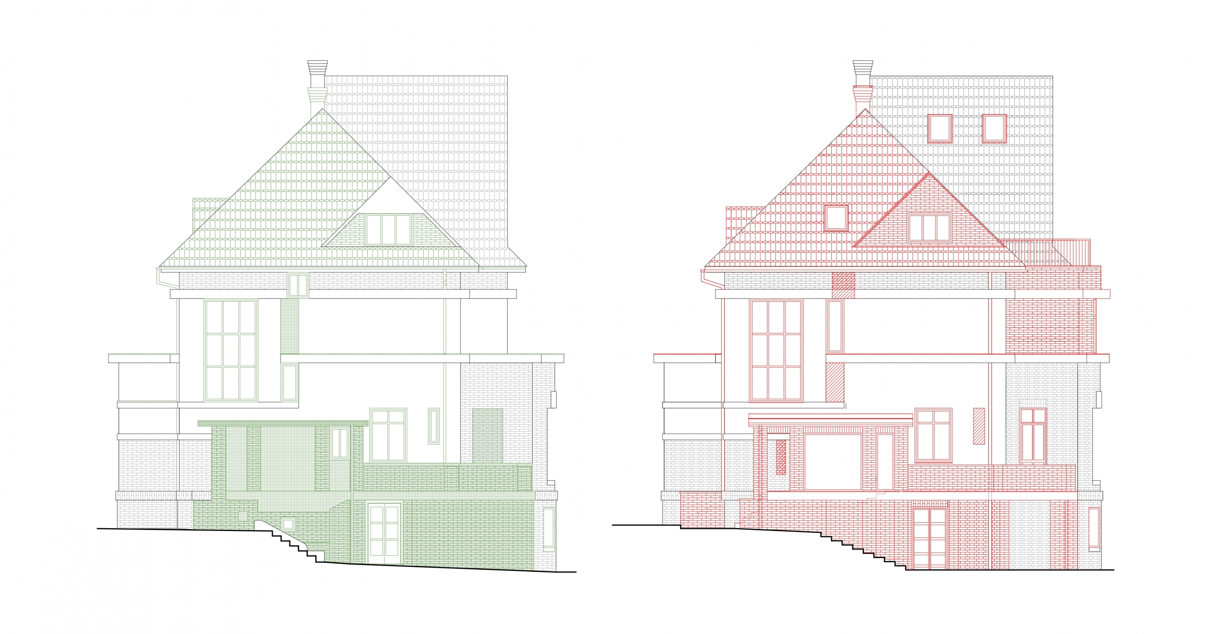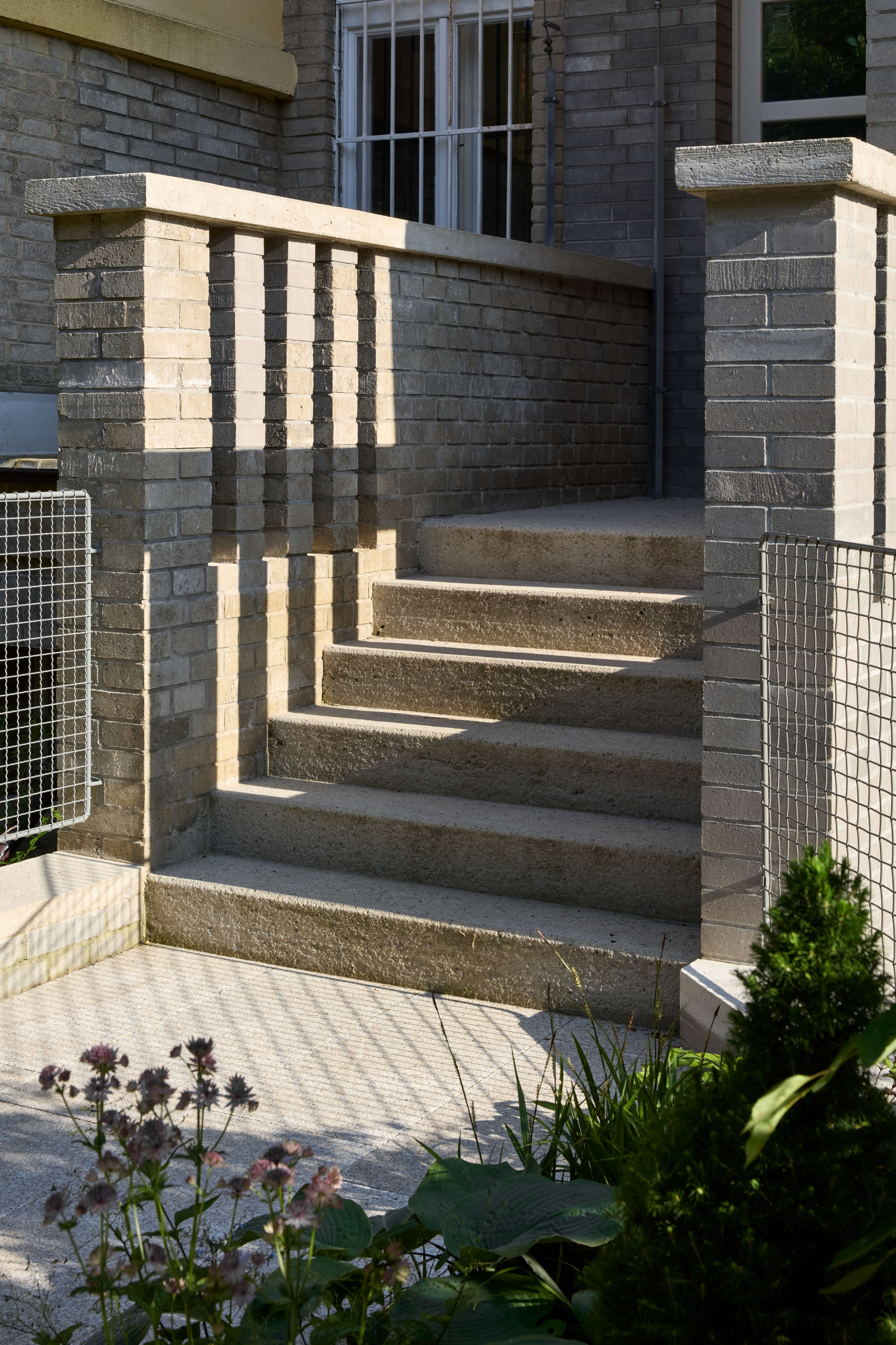 Rekonstrukce se zaměřuje na obnovu exteriéru, kde je zachován původní charakter fasády s pohledovými betonovými cihlami v suterénu a břízolitovou omítkou ve vyšších podlažích. Součástí projektu je také novostavba garáže. Původní garážové stání, které bylo staticky a technicky nevyhovující, bylo zbouráno a nahrazeno novým podzemním objektem. Tato nová garáž nabízí tři parkovací místa a její střecha je upravena jako pochozí zelená plocha, která rozšiřuje prostor zahrady.